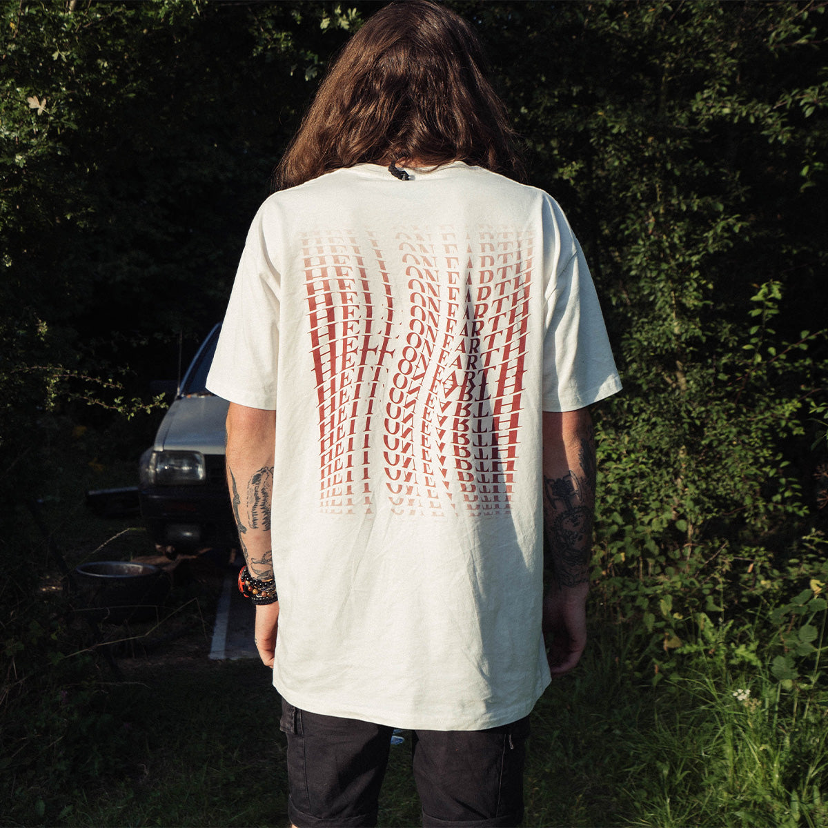 Screen printed front and back on 100% Organic Cotton t-shirt. Colour, Black.