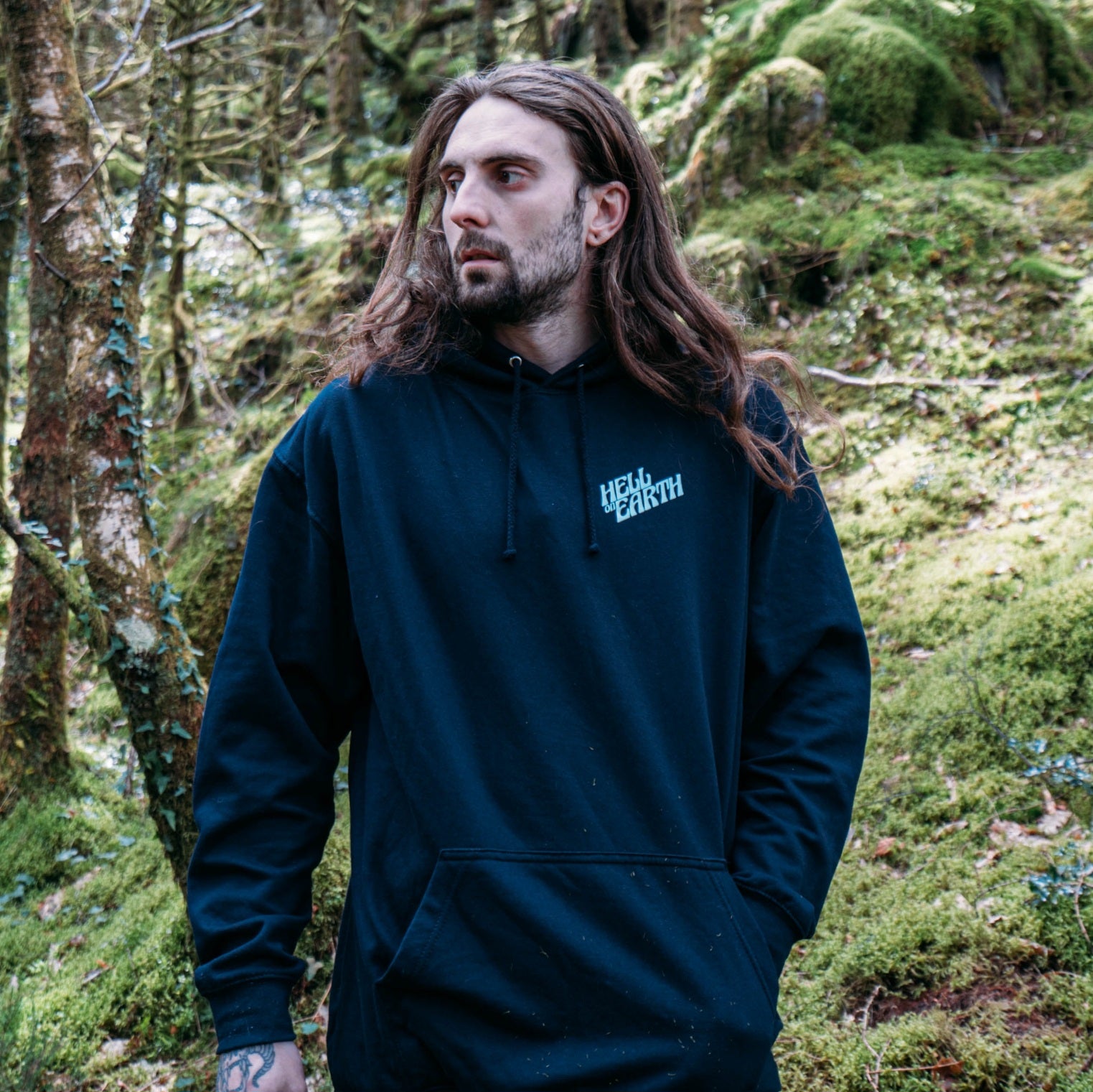 Screen-printed front and back Midnight Blue hoodie